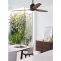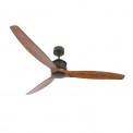 Μοντέρνος ανεμιστήρας οροφής χωρίς φως, με σώμα μεταλλικό σε πολύ σκούρο χάλκινο-καφέ χρώμα και 3 πτερύγια ξύλινα σε αντίστοιχη απόχρωση καφετί.