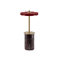 Μοντέρνο επαναφορτιζόμενο επιτραπέζιο φωτιστικό, εσωτερικού χώρου, τελευταίας τεχνολογίας με 10ετή εγγύηση. Έχει λευκό μαρμάρινο κύλινδρικο ως βάση, σώμα μεταλλικό χρυσό και στρογγυλή πλακέ κεφαλή σε χρώμα λευκό, LED θερμό φως 2600Κ με CRI 92. Έχει θύρα USB και κουμπί χειρισμού στη βάση και στη συσκευασία συμπεριλαμβάνεται φορτιστής και USB type C καλώδιο.