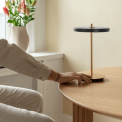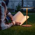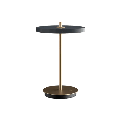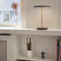 Μοντέρνο επαναφορτιζόμενο επιτραπέζιο φωτιστικό, εσωτερικού χώρου, τελευταίας τεχνολογίας με 10ετή εγγύηση. Έχει σώμα μεταλλικό (χρυσή ράβδο και βάση) στρογγυλή πλακέ κεφαλή LED σε χρώμα γκρι ανθρακί. Έχει θύρα USB και κουμπί χειρισμού στη βάση και στη συσκευασία συμπεριλαμβάνεται φορτιστής και USB type C καλώδιο.