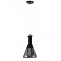 Κρεμαστό φωτιστικό μονόφωτο μαύρο-φιμέ Φ18cm γυαλί κωνικό ξύλινη λεπτομέρεια - Λεπτομερειες