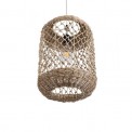 Κρεμαστό φωτιστικό καλάθι από υλικό seagrass, χρώματος μπεζ, που μοιάζει με φύκι-ψαθί, διαστάσεων Φ28xΥ40cm - Λεπτομερειες