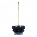 Κρεμαστό φωτιστικό Boho με μπλε ανοιχτό λεπτό βαμβακερό νήμα και χρυσό μεταλλικό πλέγμα, χρώματος μπλε σκούρο με μαύρο, διαστάσεων Φ60xΥ40cm - Λεπτομερειες