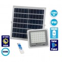 Λευκός προβολέας LED 100W 6000Κ με ηλιακό πάνελ και τηλεχειριστήριο