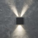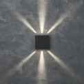 Στεγανό φωτιστικό τοίχου 11x11cm LED με 4 μοτίβα φωτισμού Up-Down, ρυθμιζόμενα μέσω πτερυγίου, όπως φαίνονται στις φωτογραφίες.