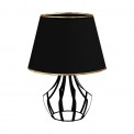Φωτιστικό πορτατίφ μαύρο με υφασμάτινο καπέλο με σιρίτι χρυσαφί και βάση από μεταλλικό πλέγμα - Λεπτομερειες